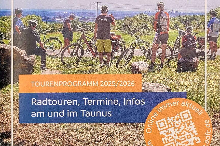 Der ADFC Hochtaunus hat sein gedrucktes Tourenprogramm 2025/26 veröffentlicht. Es enthält alle Radtouren im Hocchtaunuskreis mit weiteren Informationen über die Tour-Guides, die Startpunkte der Touren und wichtige Hinweise zum Ablauf unserer Touren.